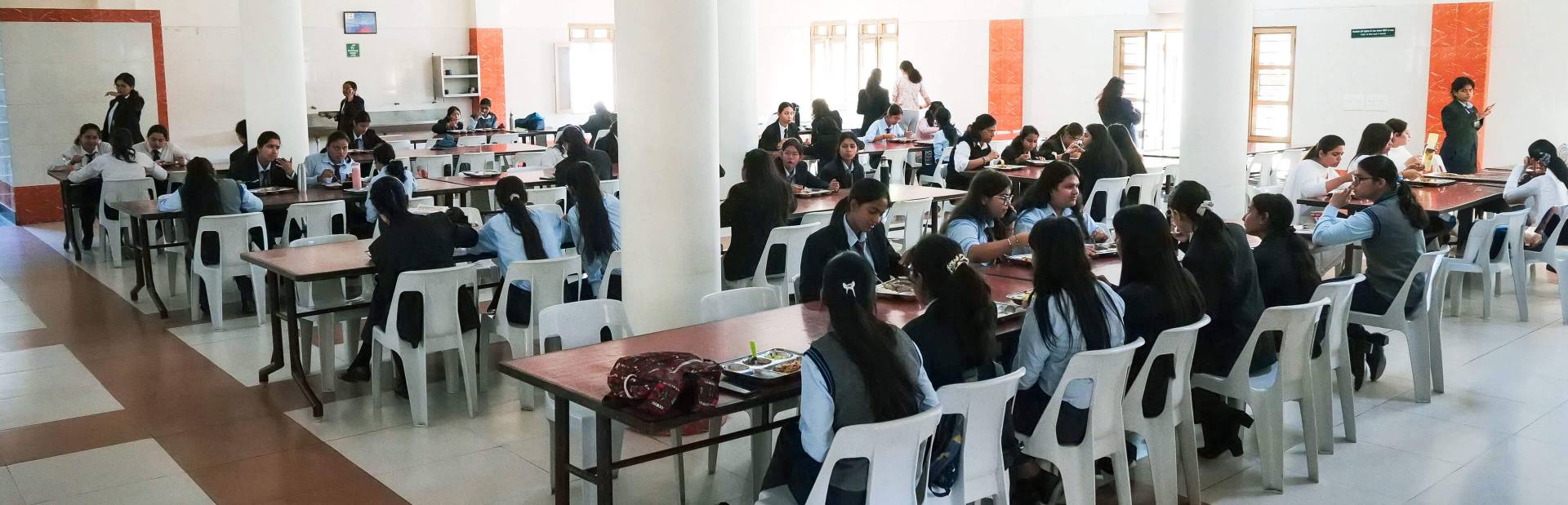 Great care is taken to create a home-like atmosphere by providing nutritious meals cooked in an utmost hygienic way in modern cooking ware. The mess staff takes special care to plan out a weekly menu that satisfies the vegetarian and non-vegetarian tastes. There is a separate mess for boys and girls.